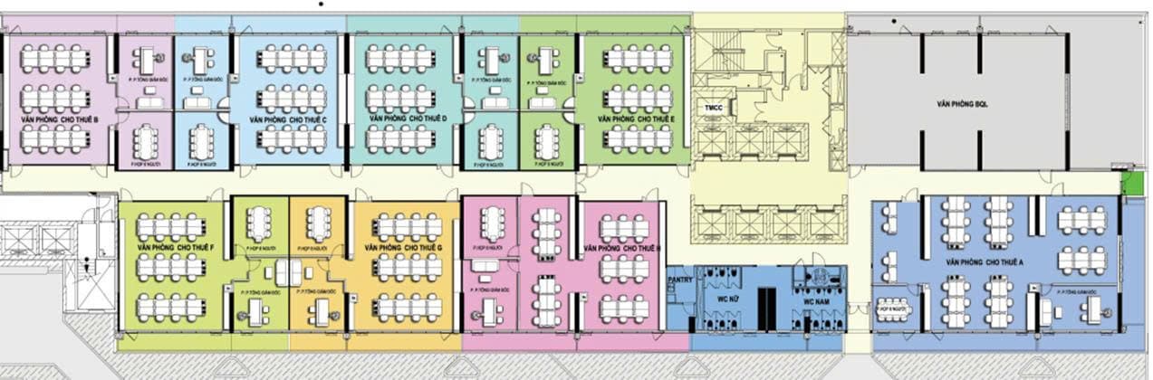 – Các diện tích cắt nhỏ từ 145m2: 14$+3$ = 17$/m2/tháng